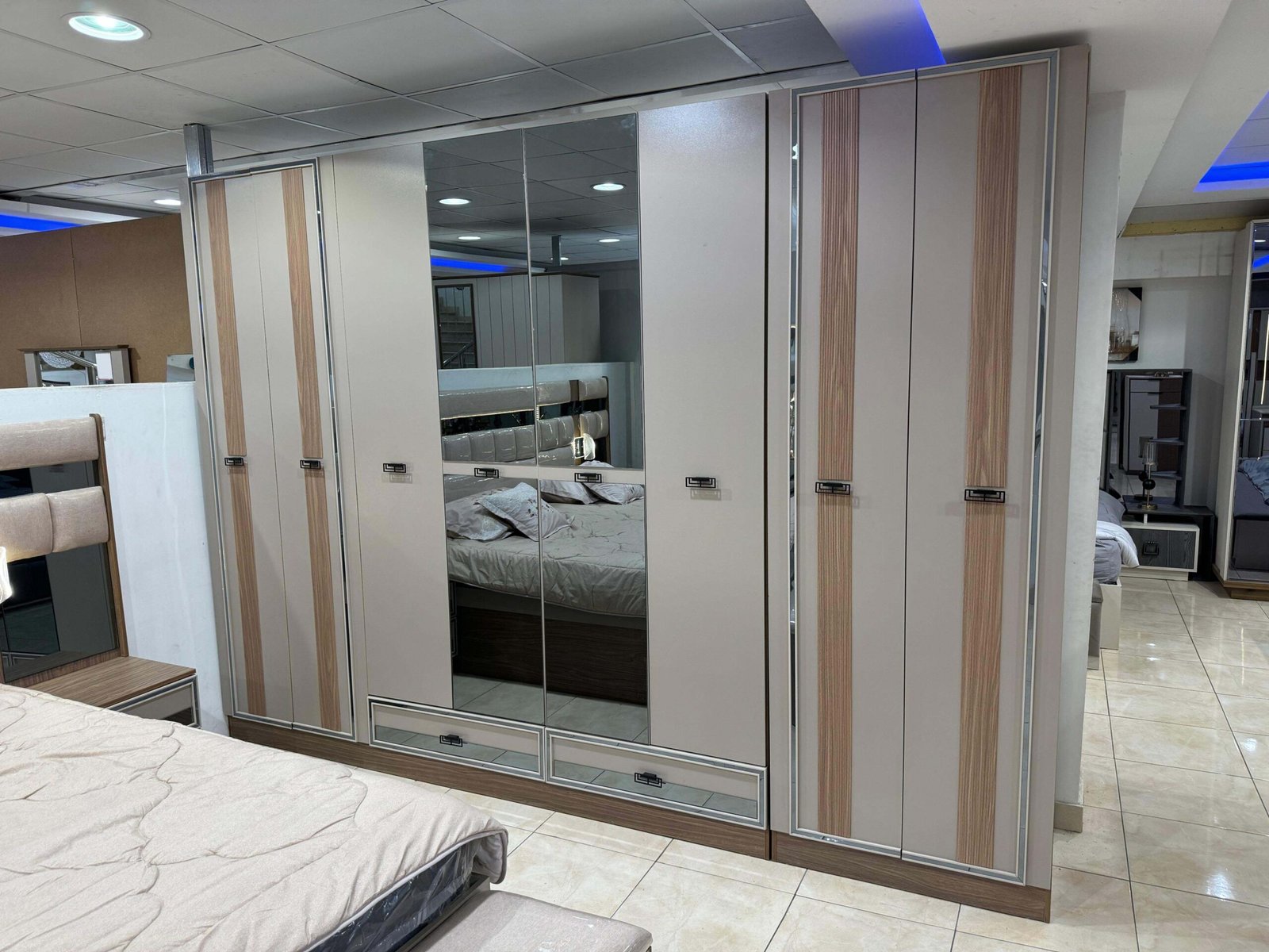 للبيع غرفة نوم جديدة بتصميم عصري بخزانة ملابس 8 ابواب بسعر مخفض الصناعة : صيني