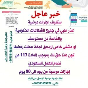 0591****74 رقم الهاتف: 0580620957 البريد: aboalew29@gmail.coma العنوان: مكتب ابو فيصل للخدمات العامة الوصف: سكليف إجازات مرضيه عذر طبي من يوم الى ٩٠ يوم رابط المشاركة اضافة الى المفضلة 323 مشاهدة جدة اتصل لمزيد من المعلومات مكتب ابو فيصل سكليف إجازات مرضيه عذر طبي سنتين خدمات تعقيب اضافة الى المفضلة 41 مشاهدة عرعر 1 مكتب ابو علي التعقيب 3 سنوات خدمات تعقيب اضافة الى المفضلة 61 مشاهدة عرعر اتصل لمزيد من المعلومات مكتب أبوعلي للخدمات التعقيب 3 سنوات خدمات تعقيب