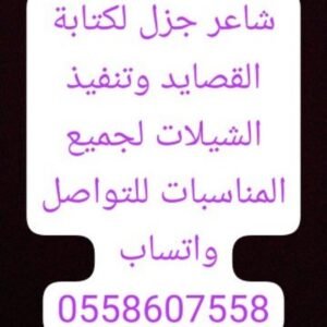 0558****58 رقم الهاتف: 0558607558 البريد: rdaljnwb26@gmail.com العنوان: الرياض الوصف: قصايد وشيلات رابط المشاركة اضافة الى المفضلة 6 مشاهدة الرياض 100 شاعر جزل لكتابة القصايد وتسجيل الشيلات لجميع المناسبات 4 أشهر خدمات أخرى اضافة الى المفضلة 107 مشاهدة الرياض 500 شاعر جزل متمكن لكتابة القصايد وتنفيذ الشيلات لجميع المناسبات سنتين خدمات أخرى اضافة الى المفضلة 35 مشاهدة الرياض 500 شاعر جزل لكتابة القصايد وتنفيذ الشيلات لجميع المناسبات سنتين جميع أنواع الرفوف